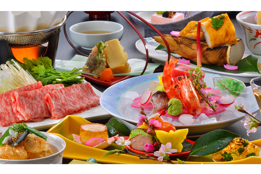 お食事は、地元の特産物や旬の素材を楽しむことができる和食会席をご用意。