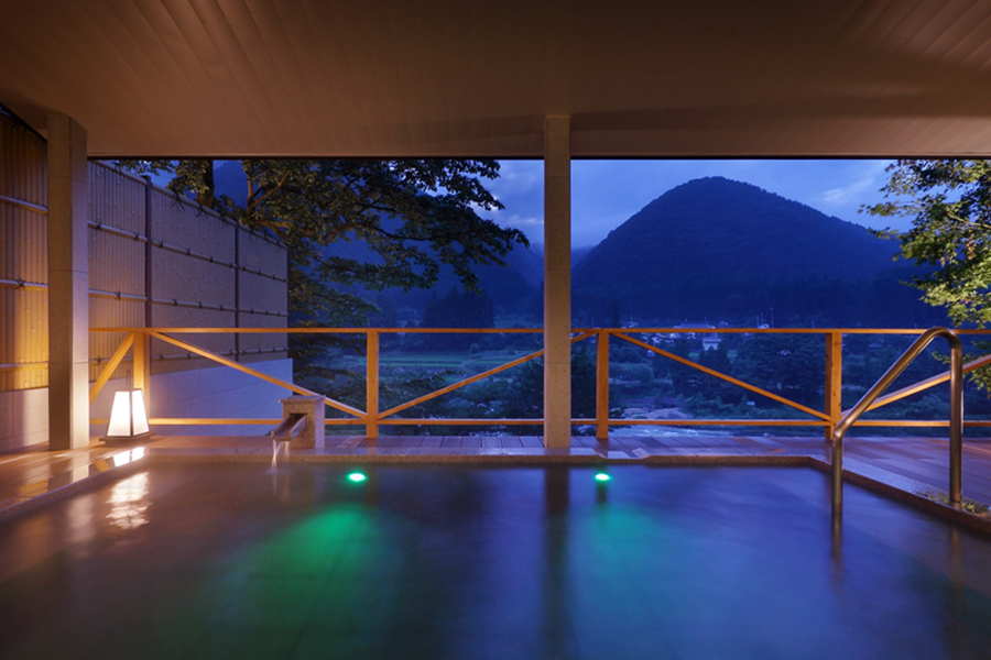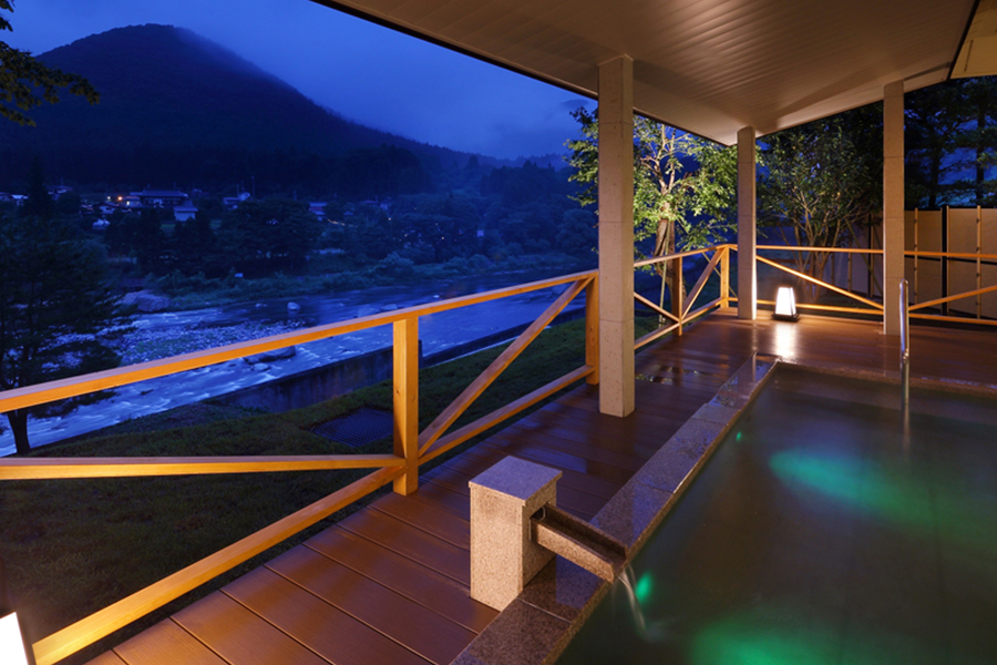 眼下に流れる川音が心地いい露天風呂は、雪解けの春、蝉や鳥の声が響く夏、山が色づく秋、そしてしんしんと雪降る冬。四季折々の風情を、湧き出る温泉にゆったりと浸りながら堪能できます。リニューアルしたお風呂は大浴場のほか、貸切風呂など趣向を凝らした多様なスタイルが用意されています。美肌効果も期待できる温泉で、癒しのひとときを。